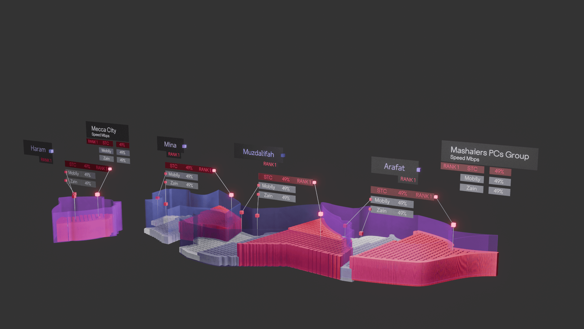 As part of an internship, the project is developed by I-mmersive and focuses on the creation of an interactive hologram table for STC Arabic for Hajj 2025. The work includes the design of 3D graphics, guideline-compliant 2D interfaces, data visualisations, and animations. Regular coordination with developers ensures close alignment between design and technical implementation.